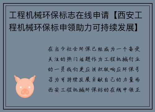 在当今社会,环保已经成为一个备受关注的热门话题。作为工程机械行业的一员,我们更应该积极响应环保号召,为可持续发展贡献自己的力量。而西安工程机械环保标的在线申领,正是为我们提供了一个助力可持续发展的机会。