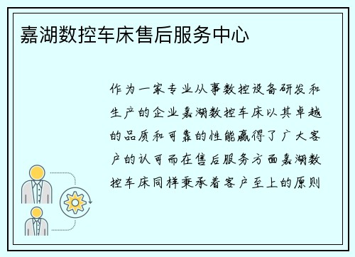 作为一家专业从事数控设备研发和生产的企业,嘉湖数控车床以其卓越的品质和可靠的性能赢得了广大客户的认可。而在售后服务方面,嘉湖数控车床同样秉承着“客户至上”的原则,为客户提供全方位的支持和服务。本文将以嘉湖数控车床售后为中心,详细阐述其在售后服务方面的优势和特点。