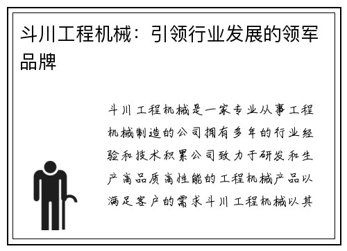 首页 / Our Projects /斗川工程机械:引领行业发展的领军品牌斗川工程机械:引领行业发展的领军品牌